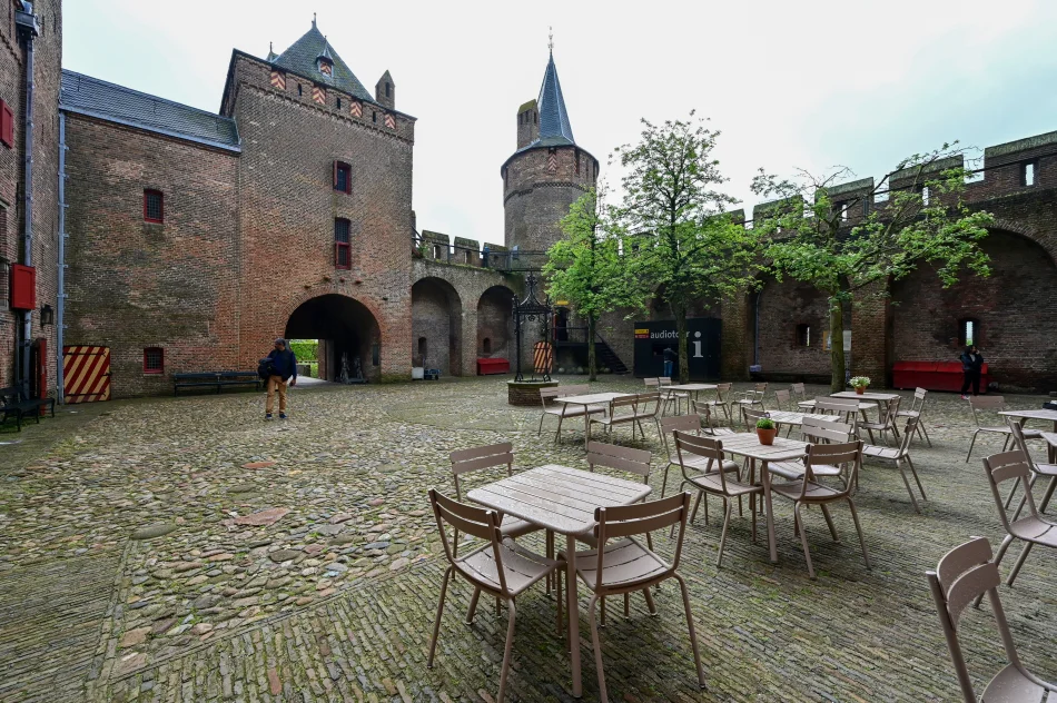 穆登城堡內部的參觀動線很簡單、跟隨導覽機的動線順路參觀就好。導覽會介紹城堡的緣起與首任主人-Count Floris V,但篇幅不多,因為落成後不到20年他就因與這區域的其他貴族發生衝突而於堡內喪生,城堡成為廢墟,現在的城堡建築與他沒啥關係。