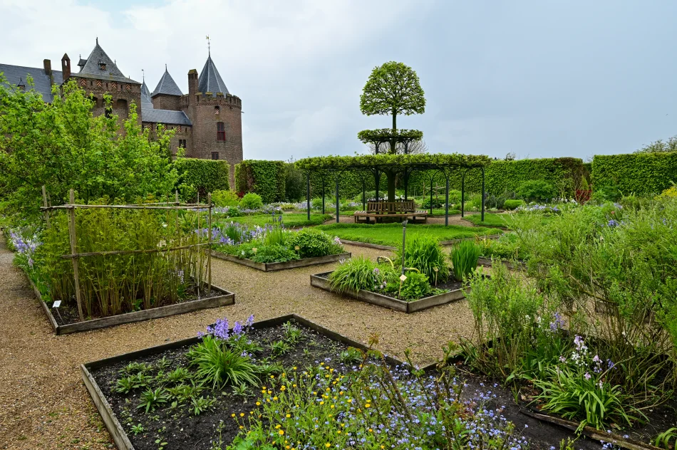 進入城堡區域後,城堡大門的正對面就是花園與藥草園,我造訪的這一天天色不佳,不僅陰天還飄雨,沒花太多時間在這區域,春天百花盛開時應該很美!還有時間的話可以在城堡四周走走,拍張到此一遊的照片留念。