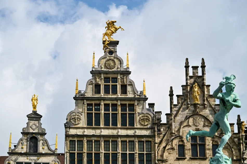 跟其他比利時大廣場一樣,這邊也有市政廳,周遭則是各種公會建築,於1887年設立的Brabo Fountain則是描繪安特衛普的傳奇。顧名思義,這噴泉就是要紀念Brabo,他便是前面提到殺死巨人Druon Antigoon的羅馬士兵,投擲的姿態栩栩如生。