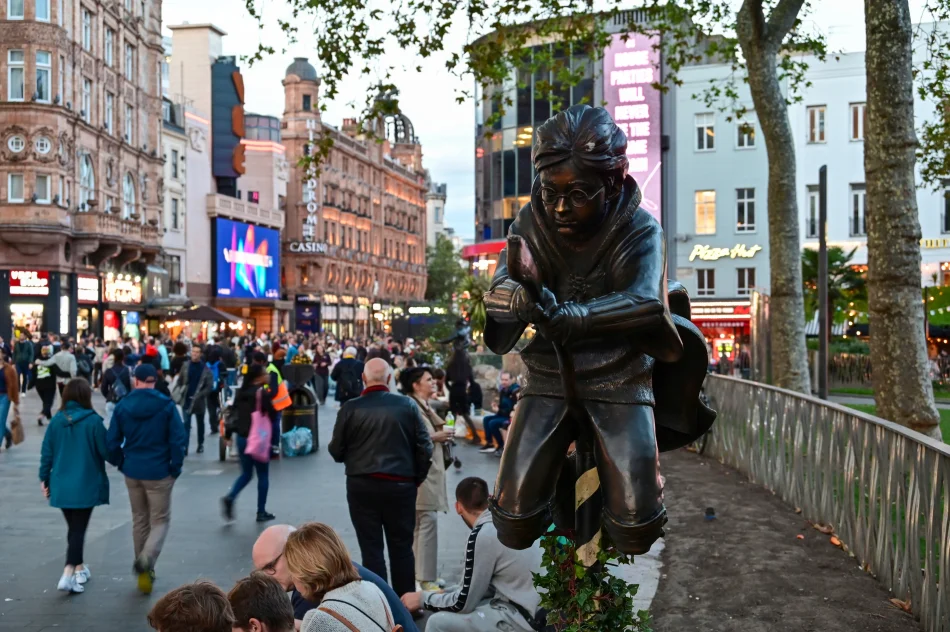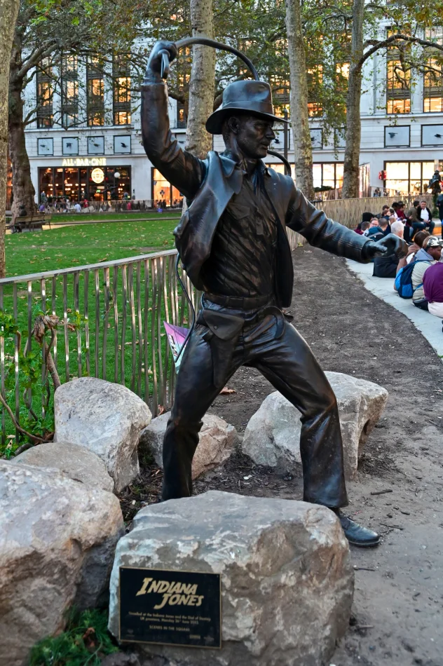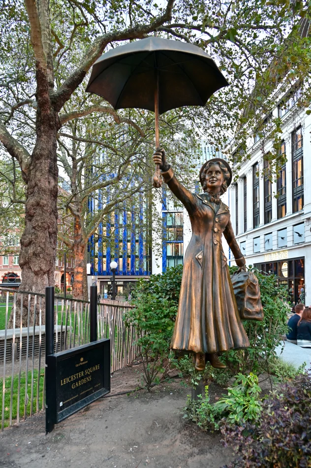 位於柯芬園與七晷區西邊的萊特斯特廣場(Leicester Square,Google Maps位置圖)也是倫敦的知名鬧區,廣場主體是個小公園,周遭有一些有趣的雕像,例如:哈利波特、印第安那瓊斯等等,我太晚到、公園入口已封閉,裡面還有莎士比亞雕像。