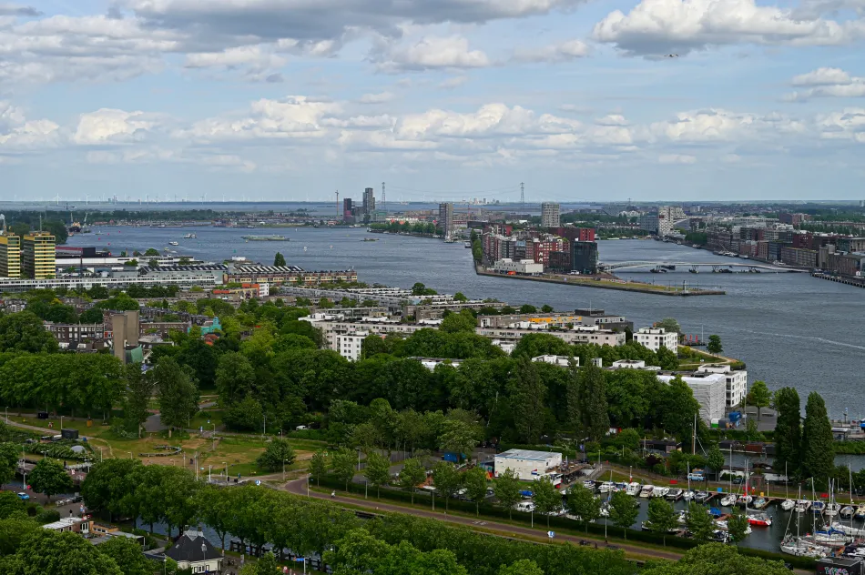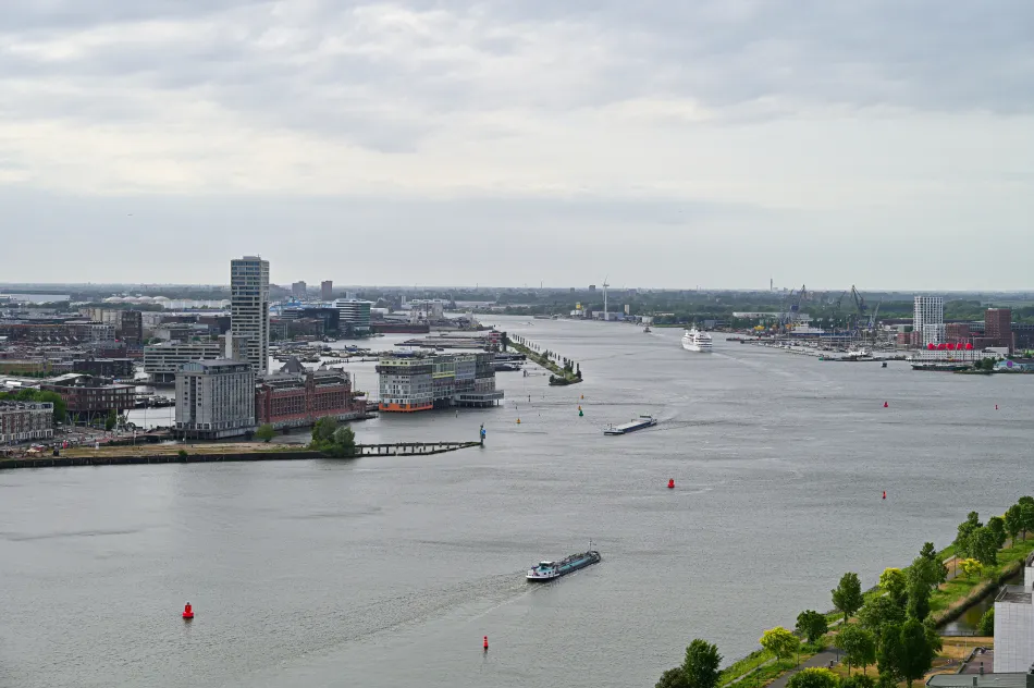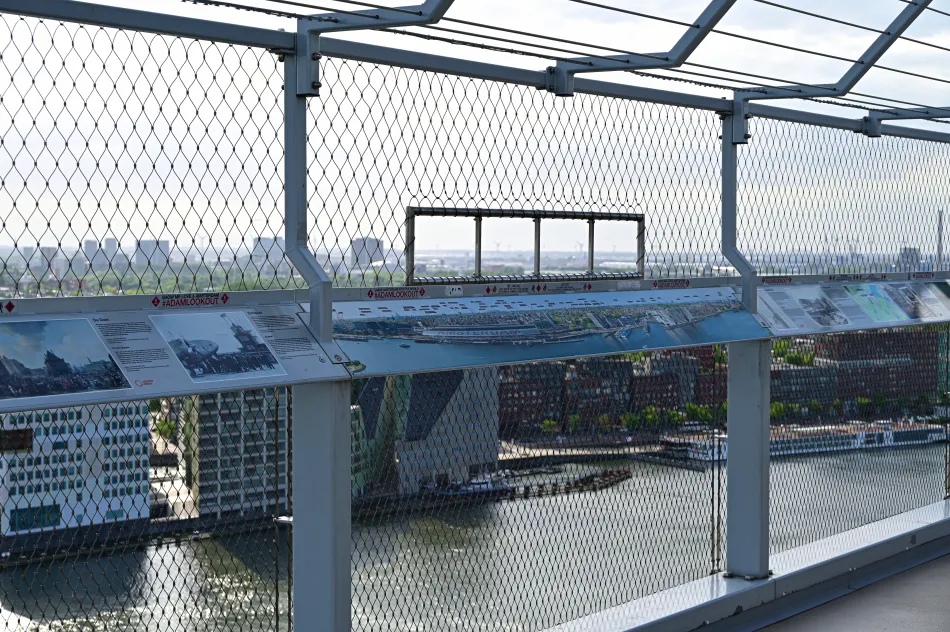搭乘電梯到位於20樓(約100公尺高)的觀景台後,就是隨處拍拍、體會360度的全方位視野,如果你認得阿姆斯特丹的話應該會覺很有趣,這角度跟位於市中心的觀景台截然不同;不熟悉阿姆斯特丹天際線的話可以參考我圖片說明。