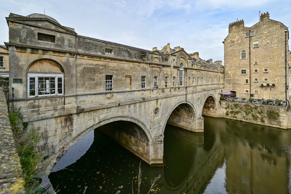 位於巴斯修道院教堂西北方的普爾特尼橋(Pulteney Bridge,Google Map位置圖)是知名的巴斯景點,其實就是一個地標。這18世紀完工的橋樑其特別之處在於它是世界上為數不多的商店橋梁,意即橋梁兩側都有商店或餐廳,但就僅此而已,算是到此一遊的景點。