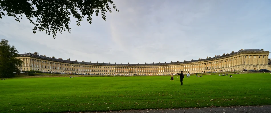 通常這邊是巴斯市區景點中離車站最遠的一個(步行約20–25分鐘)、通常是最後一站,累的話可以在公園休息一下,皇家新月的對面就是一個超大的綠地。如果只是想拍拍照建議在皇家新月前面的馬路取景就好、不用走到草地,那邊的構圖不好看。