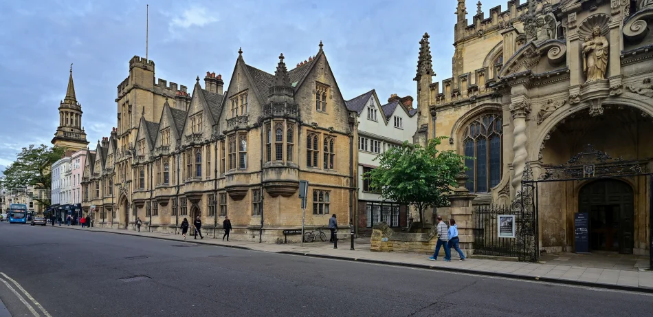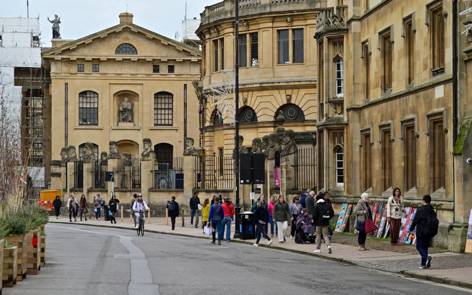 由卡爾法克斯塔旁邊的穀物市場街(Cronmarket Street)往北行、到了寬街(Broad Street)再往右行就可以抵達這邊要介紹的區域,沿途是牛津市區最熱鬧的區域,遊客中心就在寬街,也是導覽的集合地點。