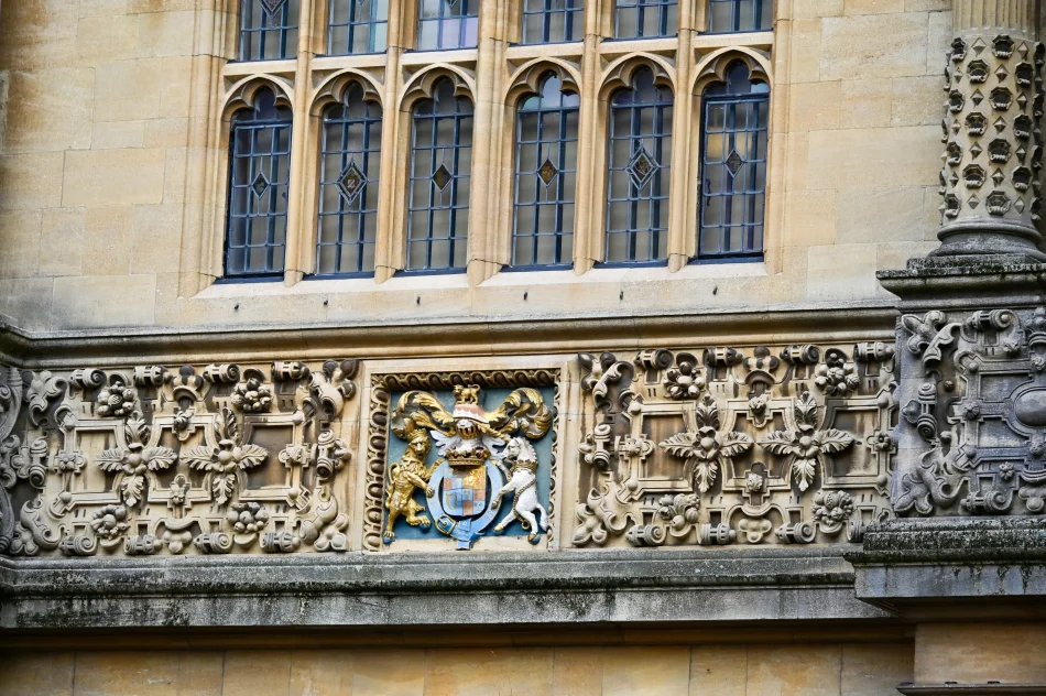 雖然大多數人到這邊都是要參觀神學院,中庭的主要入口–五階塔(The Tower of the Five Orders)也很有看頭,如果熟悉歐洲建築樣式的話可以發現這個塔有五種柱頭樣式、很有趣,下面的大門有不少牛津大學學院的紋章。