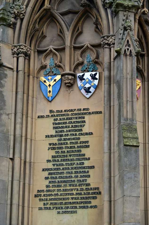 這教堂是牛津大學很早期的建築、主要教堂之一,也是牛津殉道者受審的地方。瑪麗一世(血腥瑪麗)即位後大力迫害不願意改信天主教的英國國教信眾,最知名的受害者就是牛津殉道者之一的湯瑪斯.克雷默(Thomas Cranmer),他後來受刑時良心發現、否認改信天主教,並先將認罪時舉起的那隻手伸入火堆中。