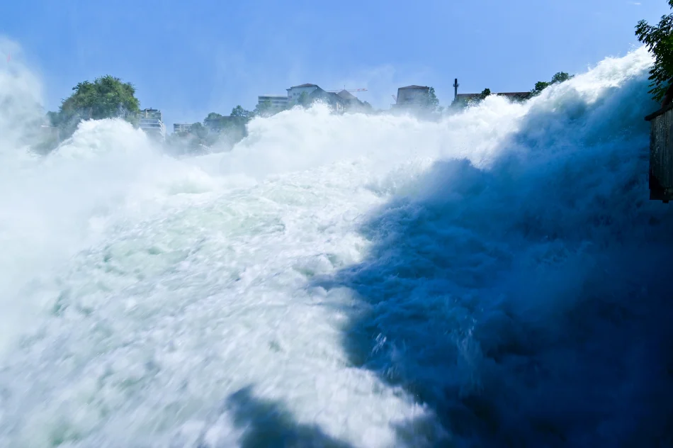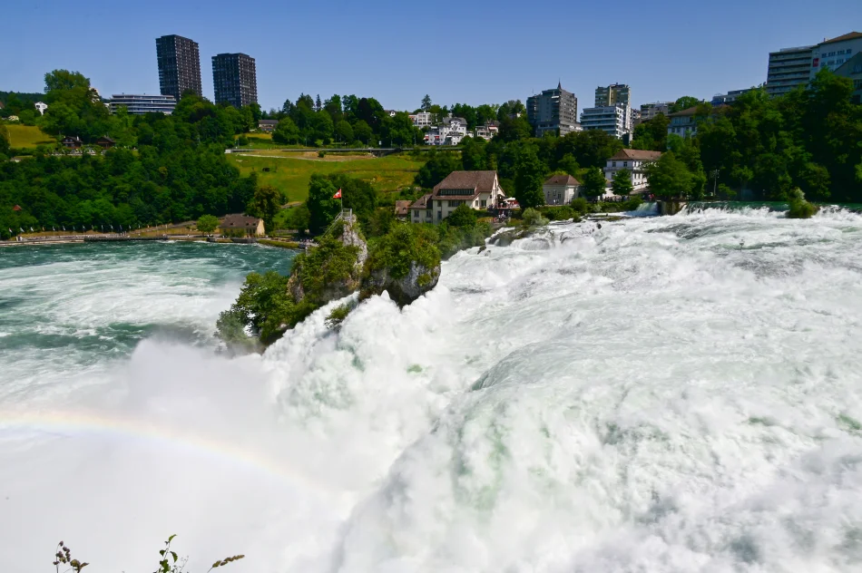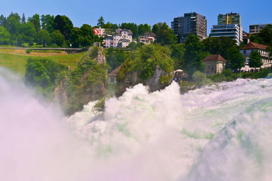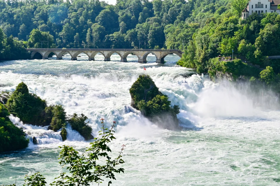萊茵瀑布是萊茵河的天險,以前到了這邊都要改成陸運來繞過瀑布,曾經有荷蘭人建議炸掉瀑布來打通河運,還好沒發生。鐵路運輸發達之後河運的重要性降低,才打消這些無奇不有的念頭,保留了這舉世聞名的自然景觀。