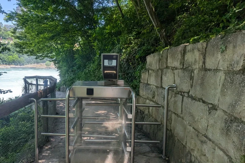 如果時間有限然後想以拍照為主,我會建議將萊茵瀑布行程的重點放在前述的西側、北側跟遊船,城堡這一側拍瀑布並不好看,只是可以近距離體驗它帶來的震撼。順利的話,應該可以在1.5小時以內回到 Schloss Laufen am Rheinfall 車站,指標很明確、不用擔心迷路。我的路線是由上往下走,當然也可以反過來,下層入口也要買票、逃不掉的!