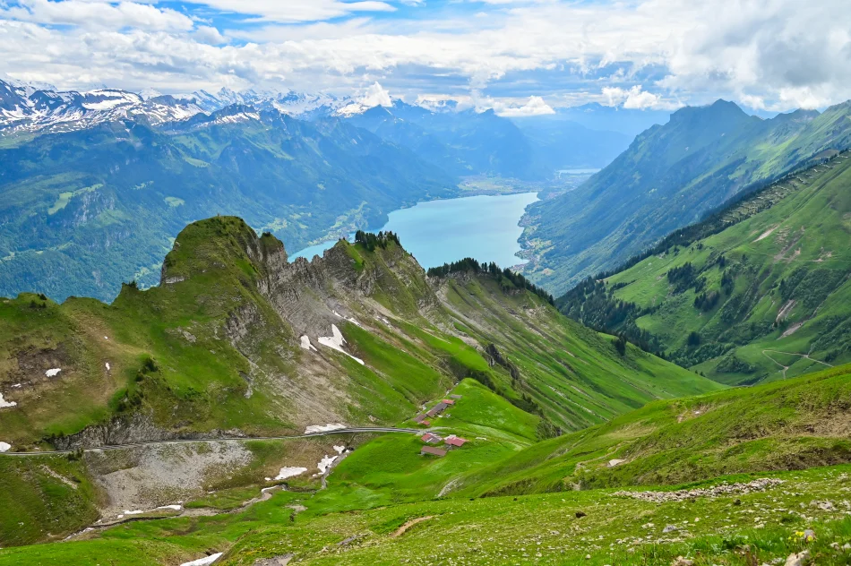 在列車經過的五個湖泊中,最讓人賞心悅目的是因特拉肯北邊的布里恩茨湖以及行程中間的龍疆湖,由因特拉肯到琉森時建議坐右邊,這一側比較好欣賞那兩個湖泊。列車在龍疆的前一站(Meiringen)停靠後,原本的車頭會變成車尾,所以原本坐右邊就變成左邊了,很奇妙。另一個我很喜歡的站點是 Giswil,可以居高臨下俯瞰山腳的村莊!