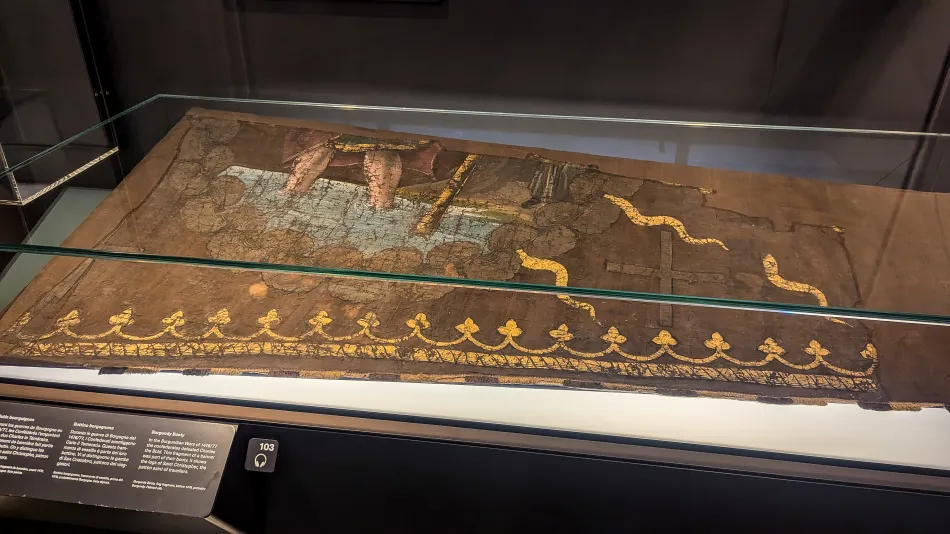 - 勃根地戰利品:很有趣的旗幟,是瑞士在15世紀與勃根地發生衝突時取得的戰利品(碎片),看得出來上面的大腳是聖克里斯多福的(旅人主保聖人)