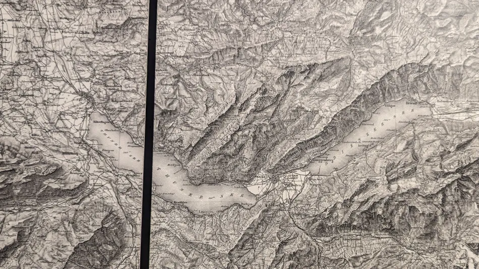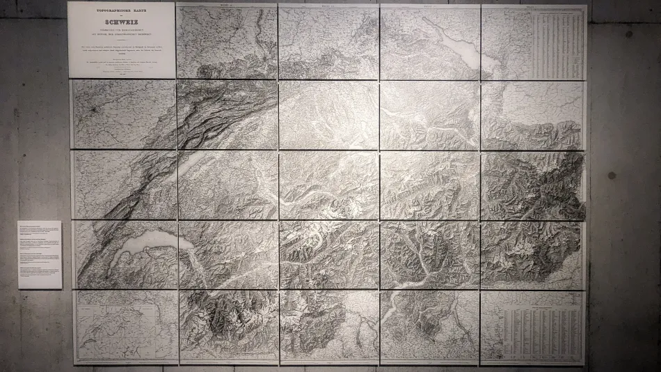 /另一個很有趣的展品是瑞士平面地圖與3 D 地形圖,以這些角度看瑞士真的蠻有趣的。早期最完整的瑞士國土測量是出自 Guillaume Henri Dufour 的手筆,他也因此壯舉而成為瑞士代表性偉人,瑞士最高峰–杜富爾峰(Dufourspitze)便是向他致敬,能走遍群山真的讓人由衷佩服。