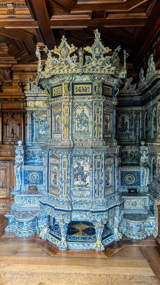 瑞士雖然不以瓷器聞名,博物館還是有展出當地的瓷器,是出自瑞士第一家瓷器廠,屬於18世紀末期的文物,圖案大多是簡約的風景或者花卉。讓人目瞪口呆的不是瓷器,而是暖爐。暖爐也是財力的象徵、炫富的工具,博物館有展出幾個讓人目瞪口呆的暖爐,上面繁複的裝飾非常值得欣賞!