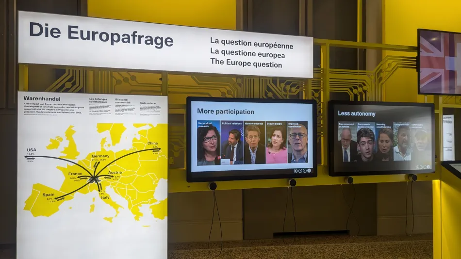 - 現代瑞士的問題:瑞士是中立國,既沒加入歐盟也不使用歐元,但它的政治、外交等等依然受歐盟影響,導覽也會介紹這些