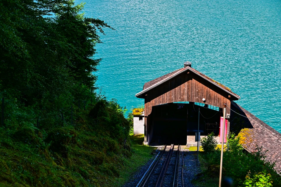 回到 Grandhotel Giessbach 之後可在飯店周遭的平台休息一下,外圍平台算是開放區域,即使沒有用餐還是可以在那邊走走拍拍,不要干擾到它們的客人就好,那區域是拍攝瀑布全景與布里恩茨湖的好位置。時間到了之後就該搭齒軌列車下山,千萬不要錯過船班,當然…也可以走下去,垂直高度約100公尺、應該不難。