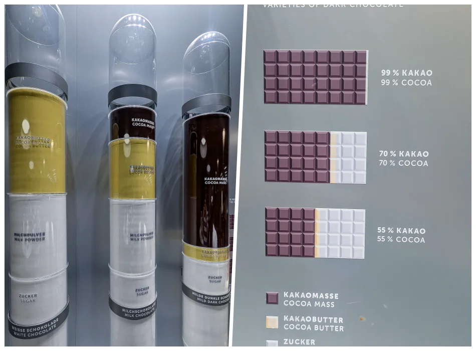 相較於科隆的伊姆霍夫巧克力博物館花了不少篇幅介紹可可豆貿易以及巧克力品飲文化,瑞士蓮巧克力之家著重在瑞士巧克力的發展、瑞士蓮的特色跟巧克力製程,內容還蠻有趣的,算是蘇黎世必去博物館,即使不是巧克力愛好者也推薦來逛逛。除了這邊,線上旅遊平台也有這邊加舊城區徒步導覽以及遊船的組合行程,有興趣的話可參考一下(查看詳情)。