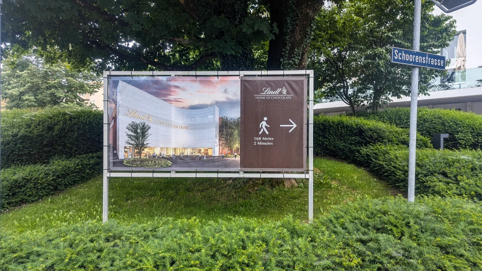 瑞士蓮巧克力之家附近沒有路面電車站、只能搭公車或者火車(S Bahn),文末再說明交通方式,我是搭公車。下了公車之後有大大的指標說明博物館位置,就在附近而已,真的找不到也可用 Google Map 規劃。