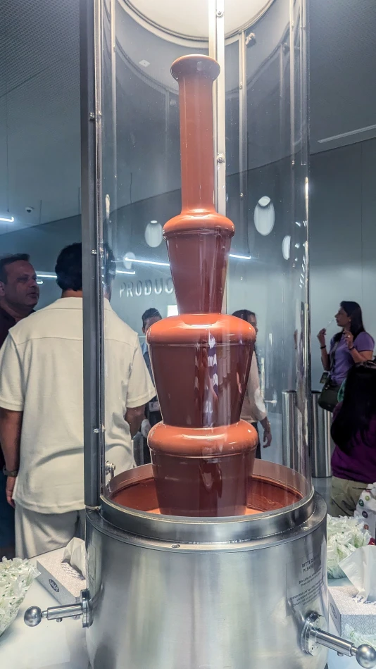進到博物館內部之後就會看到巨大的巧克力噴泉(chocolate fountain),高約9.3公尺、使用了1,400公斤製成,流速是每秒一公斤,超級驚人,也是拍照熱點。除了巧克力噴泉,旁邊還有萬惡的瑞士蓮巧克力專賣店,要不要先逛得看票面上的導覽時間,務必要準時參加導覽、別逛過頭。