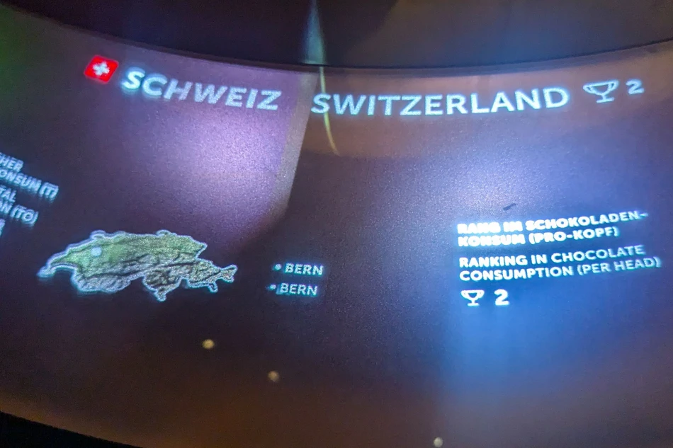 導覽的最後一部分就是介紹各國使用巧克力的概況,有興趣的話可以看一下。人均消費量最高的不是瑞士,而是德國,瑞士次之。瑞士是舉世聞名的巧克力大國,這區域也會簡單介紹各區的知名品牌,瑞士蓮是發跡於蘇黎世一帶,雀巢的老家則是瑞士西邊的沃韋(Vevey)。