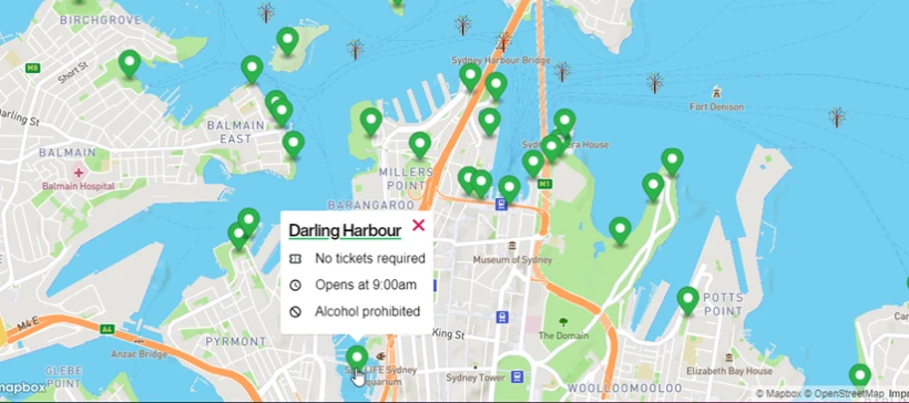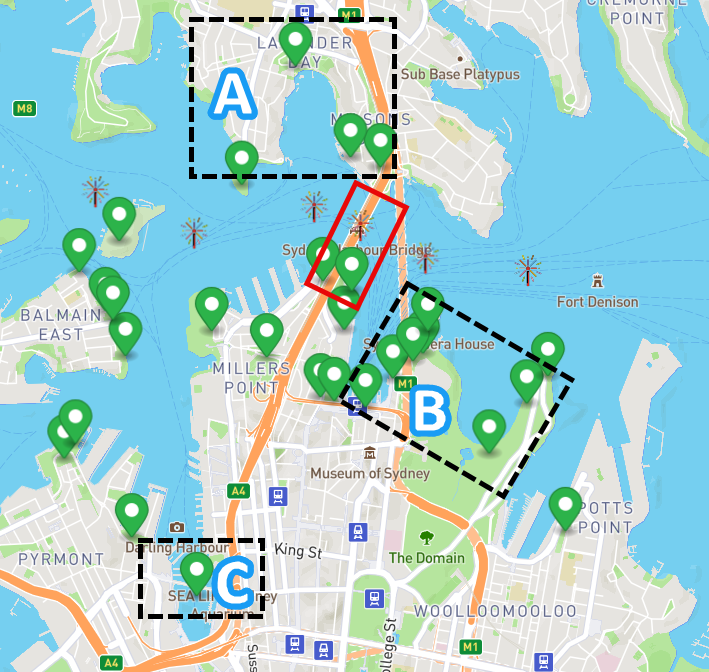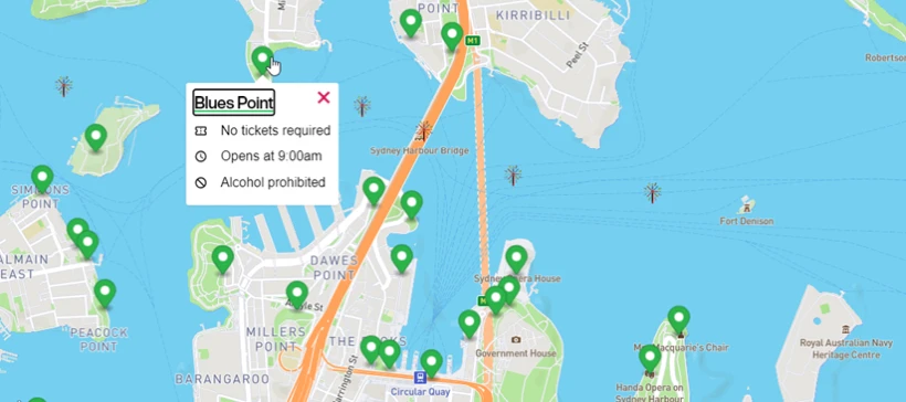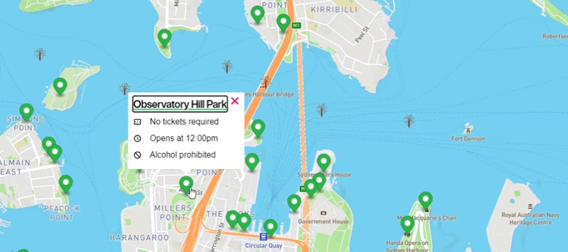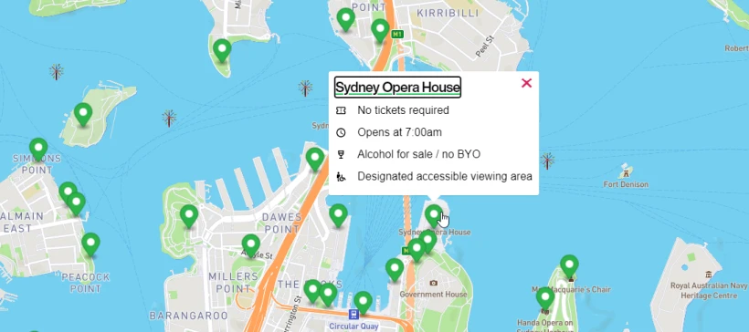 雪梨跨年煙火的觀賞地點非常多,完整清單請參考官網的地圖,熱門區域有三處: