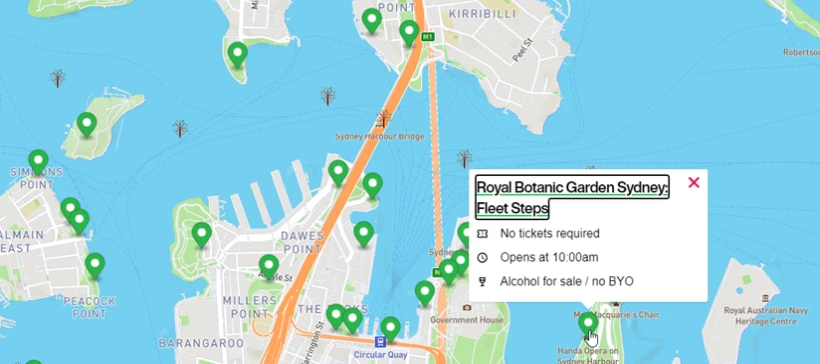 - 位置圖:Google Map 位置圖,請利用 Martin Place 或 St James 這兩個地鐵站離場,雖然最近的站點是環形碼頭,那邊當天下午就關閉了