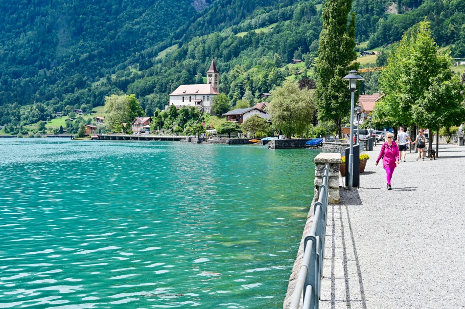 布里恩茨湖(Brienzersee)是瑞士最純淨的湖泊之一、因特拉肯行程的亮點。最經典的遊覽方式當就是由因特拉肯東站搭乘遊船,到盡頭的布里恩茨約80分鐘,沿岸會停靠伊瑟爾特瓦爾德(Iseltwald),碼頭是韓劇《愛的迫降》名場景。另一個值得遊玩的站是 Giessbach See,由那邊可到吉斯河瀑布(Giessbach Waterfalls)。