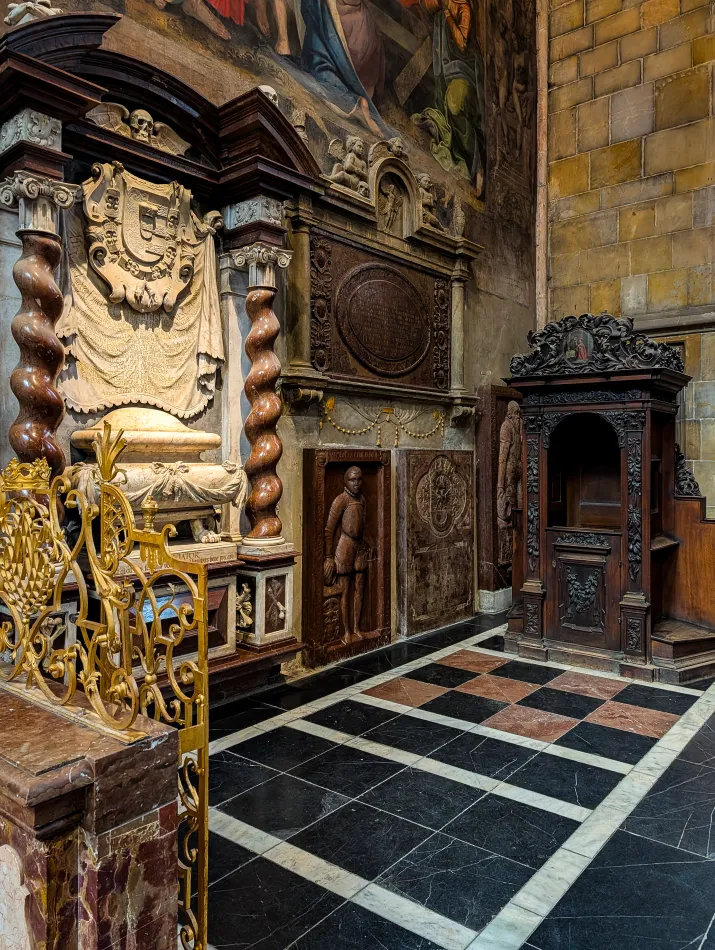 楊.內波穆克原始的陵墓也在教堂內,但我沒細查到底在哪,總之…這個使用約兩噸貴金屬製作的陵墓非常驚人,其中有不少為銀子。仔細觀察後方的天使可以看到他手持鑲有「看似」為舌頭的盾牌,那是象徵守密的代價,至於那個物品到底是什麼就難以確認了。