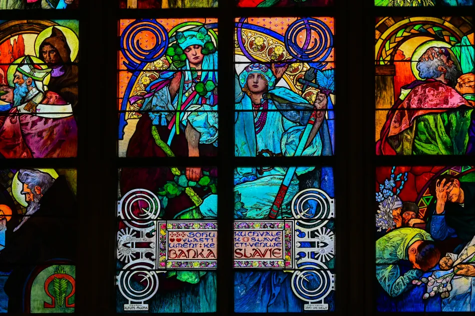 聖維特大教堂最知名的文物之一就是捷克代表性畫家–慕夏(Alfons Mucha)於1931為大教堂設計的彩繪玻璃。