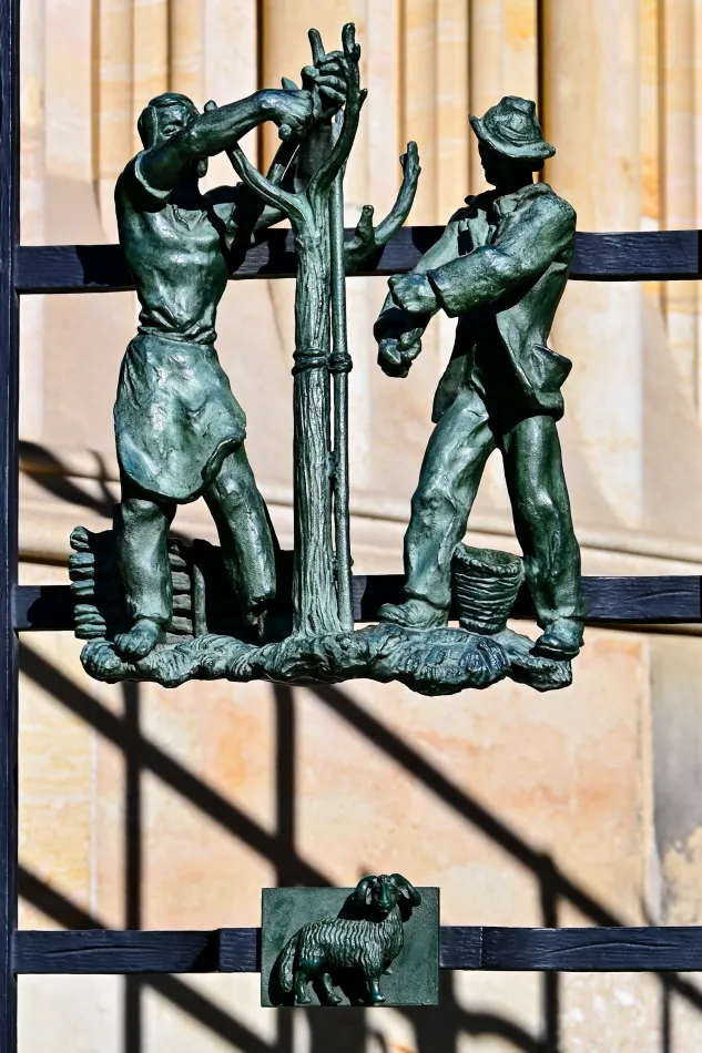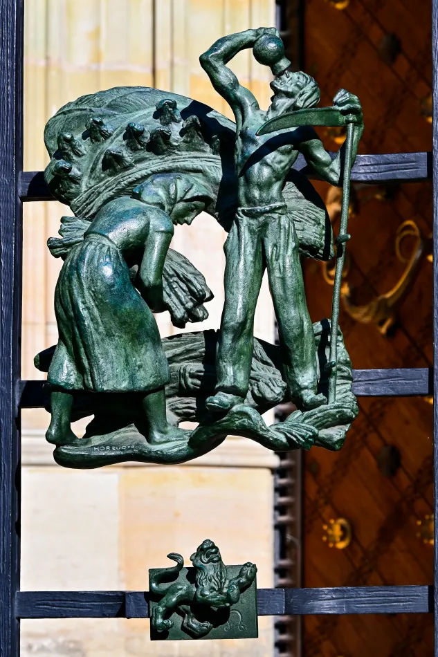 聖維特大教堂的黃金大門蠻特別的,最顯眼的是大門上方的「最後的審判」馬賽克壁畫,靠近大門還可以看到亞當與夏娃、耶穌受難等聖經相關主題,但讓我印象最深刻的是鍛鐵大門的雕刻。