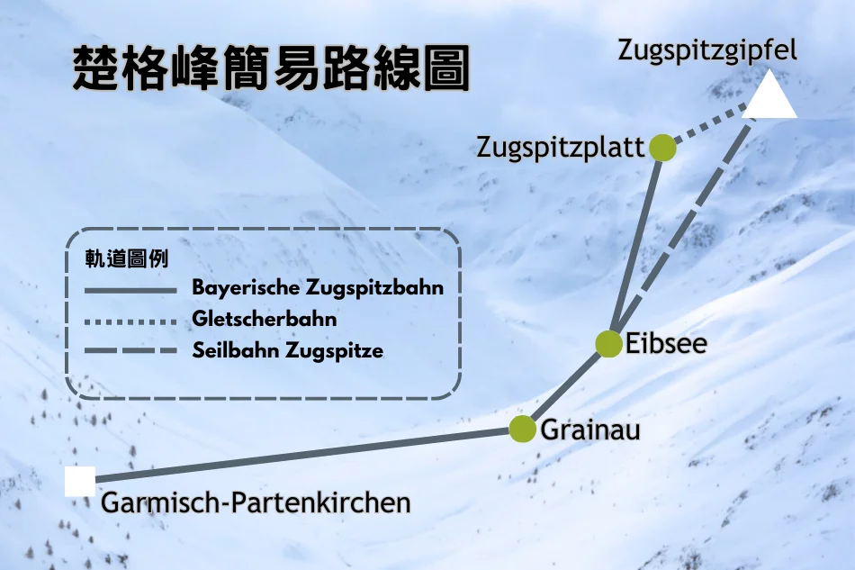 為了方便與現場對照,以下的楚格峰景點與交通說明大多採用德文名稱