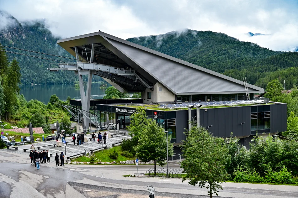 現在的 Seilbahn Zugspitze 跟車站看起來非常新穎,是於2017年完成改建,搭著它就可在10分鐘左右爬升近2,000公尺,很神奇。
