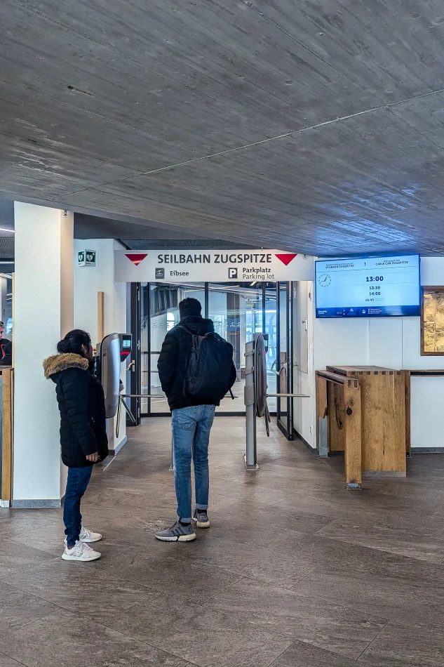 上到楚格峰後有兩個區域:楚格峰頂峰平台(Zugspitzgipfel)跟楚格峰平台(Zugspitzplatt),以冰河纜車相通,先玩哪個差別並不大,就看你是先到哪邊,我是先到楚格峰頂峰平台(Zugspitzgipfel),就先介紹這邊。在 Zugspitzgipfel 會標示 Seilbahn Zugspitze 跟 Gletscherbahn 的班次,可以先瞄一下,避免等等離開時等太久。
