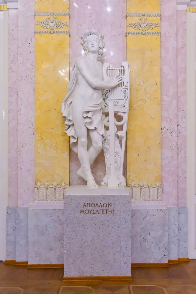 既然稱為謬思大廳,兩側有不少以灰、黃、紫的大理石雕成的謬思雕像,當然…也少不了阿波羅,對這些人物有興趣可以參考展廳的介紹。