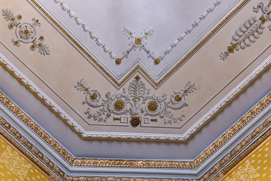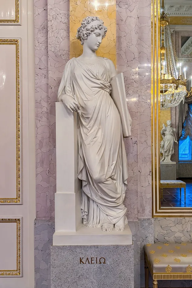 逛完上述區域後就會來到最重要的大廳:謬思大廳(Hall of the Muses),這個於1822年翻修的大廳平常為主人家庭用餐的地方,必要時可以轉變為舞廳,蠟燭燒完代表宴會結束!