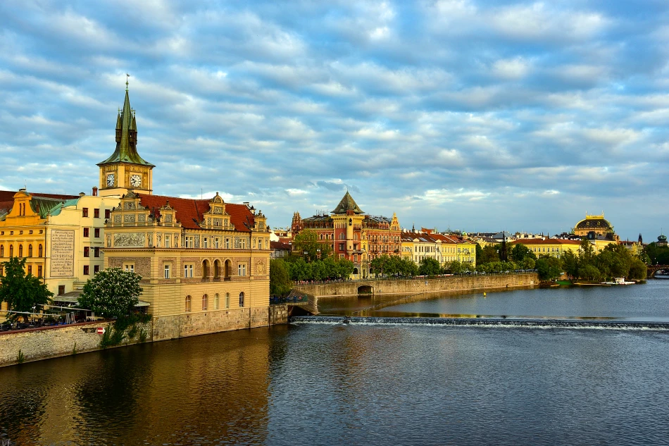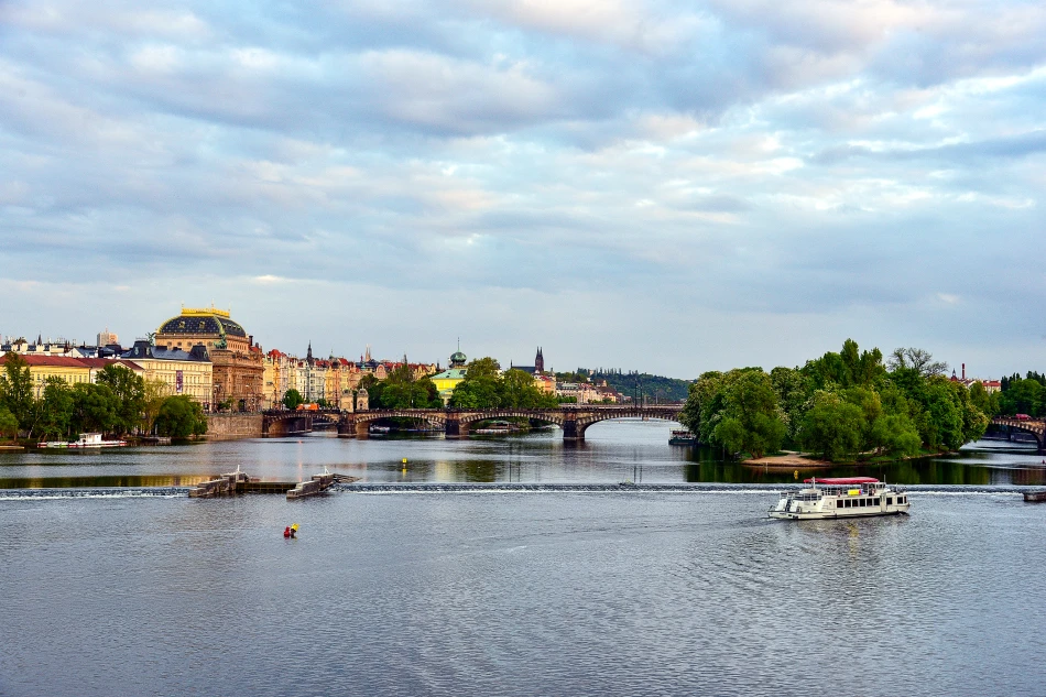 這邊拍照的重點當然就是兩側的建築,比較好看的是南側靠近舊城區那區域,南邊的橋為軍團橋,最顯眼的地標是屋頂很特別的布拉格國家劇院。北側的橋是馬內斯橋,景色很普通,必拍的布拉格城堡則位於西北方。