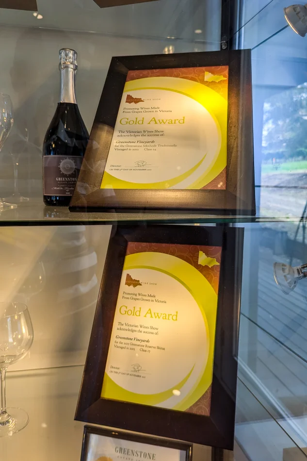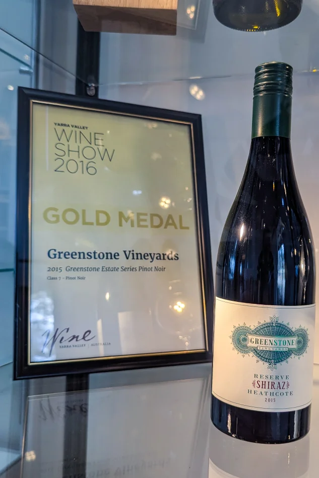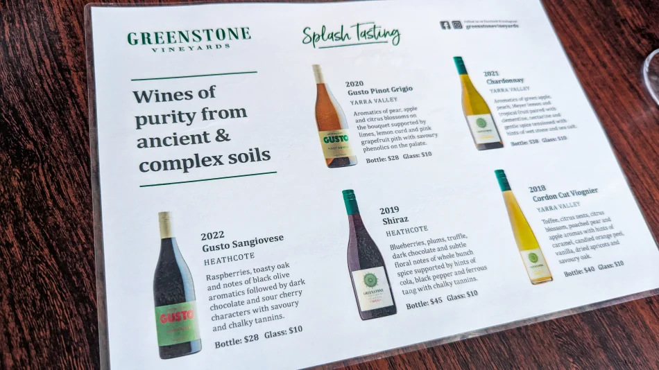 位於 Yarra Glen 的 Greenstone Vineyards(Google Map 位置圖|官網)是這次亞拉河谷一日遊第一間酒莊,離墨爾本市中心約60公里、不算太遠。這間酒莊發跡於墨爾本北方的 Heathcote、離知名的淘金城鎮 Bendigo 不遠,是由英國知名酒商與他人合力於21世紀初創辦,爾後收購亞拉河谷的 Sticks Winery & vineyards,也就是今天造訪的酒莊。