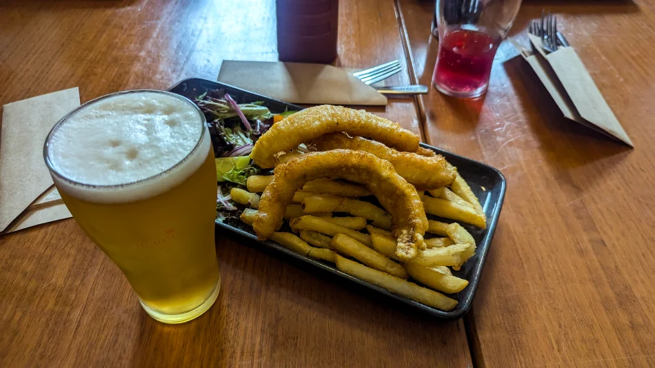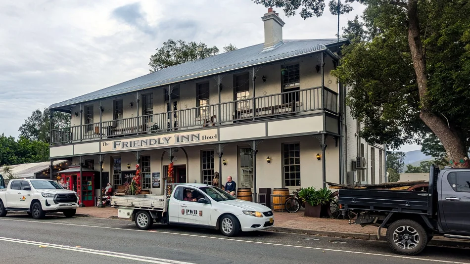 如果晚餐不知道要吃啥可以學我…點最安全的炸魚薯條(Fish and Chips),也可以自費去吧檯點杯啤酒,我覺得用餐地點還不錯,應該也是當地人會聚集的酒吧。酒足飯飽之後可以在周遭晃晃,欣賞典型澳洲鄉下小鎮的景觀。