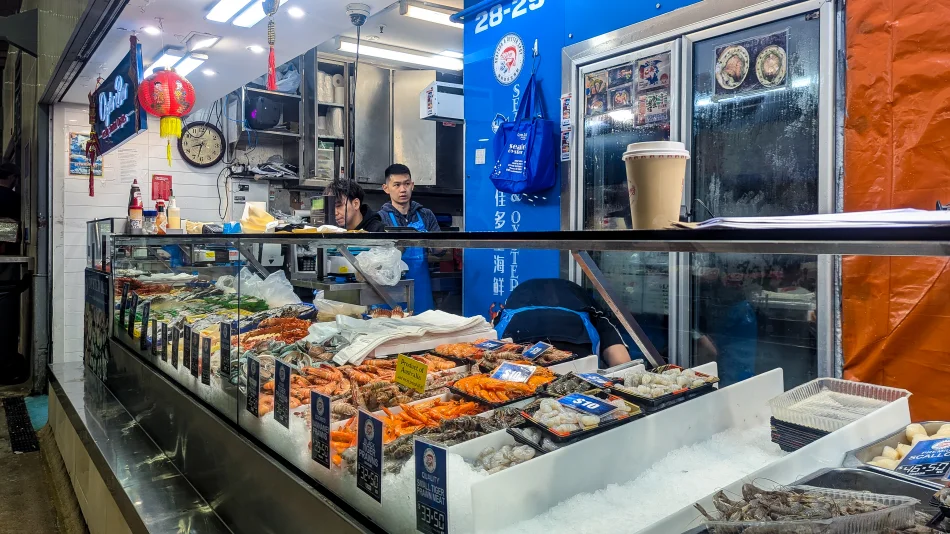 在上述區域逛購後,想看看生食的話是也可以到地圖上的 Meat & Fish Hall 看看(首圖那個代表性建築立面入內後的區域),既然是生食…代表那邊主要是當地民眾採購食材的地方,然後…非常冷!