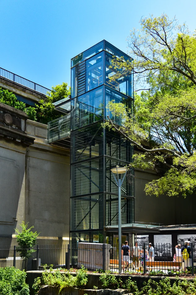 港灣大橋的遊覽方式很簡單,經由電梯(在 Bridge Stairs 附近,Google Map 位置圖)或階梯就可以抵達雪梨大橋的人行道(可將目標設為 Pylon Lookout,Google Map 位置圖),沿途都可拍照,建議走一下子再拍,視野比較好,最好的點當然就是 Pylon Lookout 的入口附近(如果你不進去的話)。