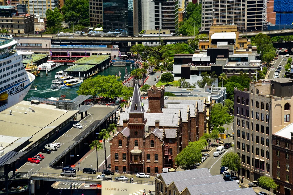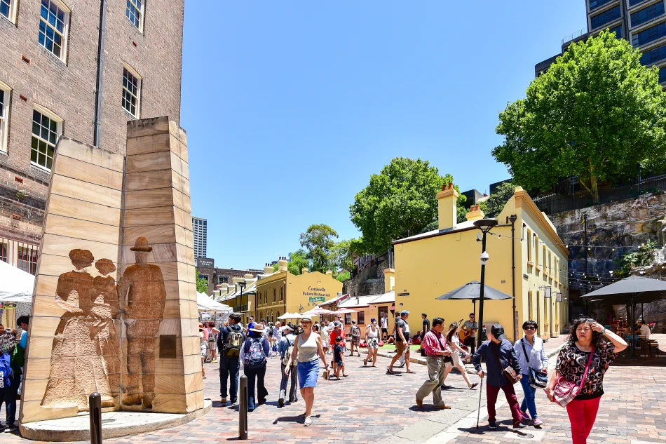 位於環形碼頭旁邊的岩石區(Rock Area)現在是雪梨必去景點跟市區開墾濫觴,在過去卻非常髒亂,充斥妓女跟買春的水手,在1870年之前是龍蛇雜處的地方。以前這區的主要建築材料是砂岩,所以被稱為岩石區。雪梨歷史建築保存不如澳洲文化之都–墨爾本,這邊算是最具懷舊復古氛圍的區域了。