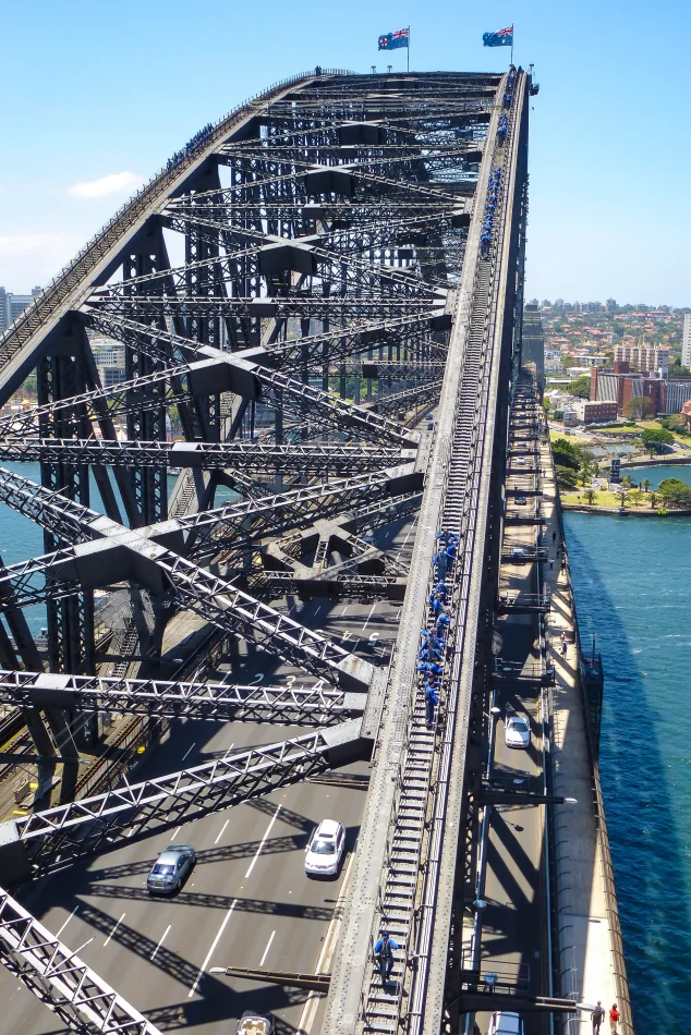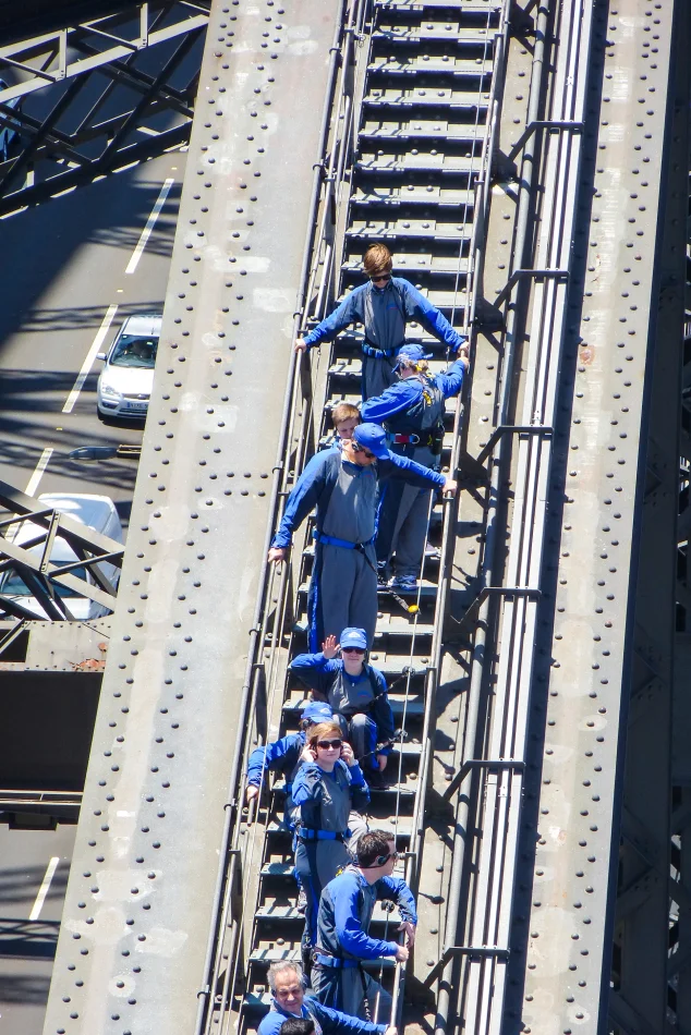 港灣大橋有一個非常熱門的體驗:攀登港灣大橋(BRIDGECLIMB),通常耗時2–3.5小時(約2/3的時間在橋身上),除了可以欣賞360度的雪梨美景,也會根據方案的不同提供各種路線與體驗。這個體驗蠻貴的、我沒玩過,詳情請參考官網的活動說明,也可以由線上旅遊平台報名(查看詳情)。