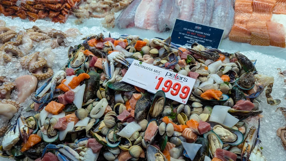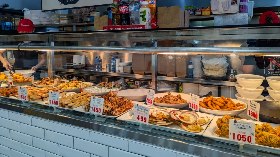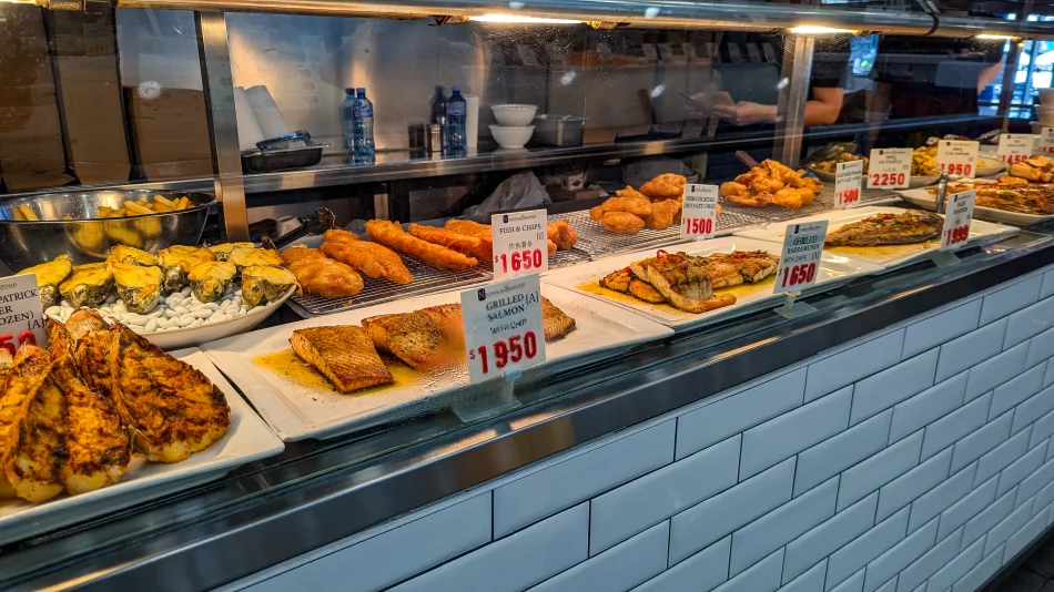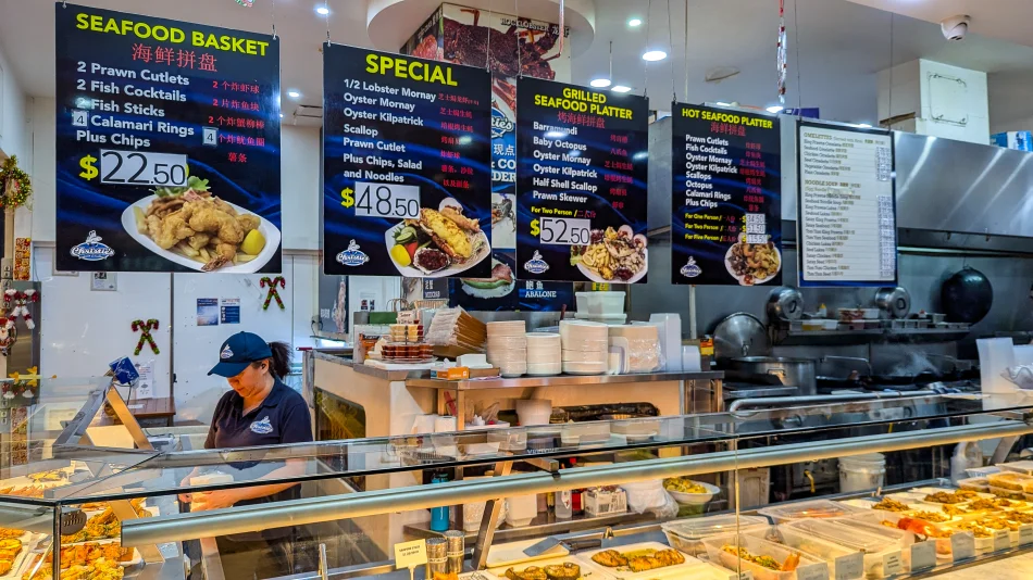 這邊的熟食的販售方式無非套餐或者單點,我覺得單點超貴的…可能隨便拿一串干貝或者一小塊龍蝦就要價 AUD 12–16,想在這邊吃飽得要有心理準備。當然…也有店家會提供多人份的餐點,看起來頗豐盛,價格也還可以接受。