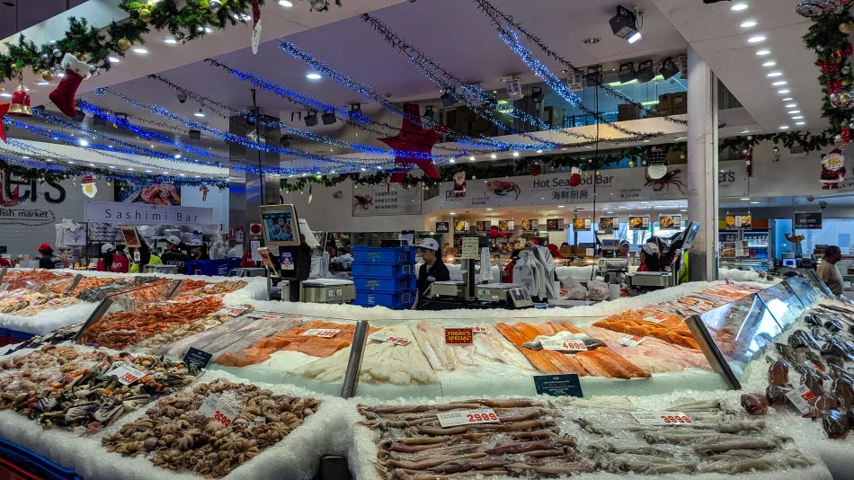 這魚市場賣的生鮮魚貨應有盡有,也可以花點時間逛一下,但我不確定以當地消費來說是貴還是便宜,總之有賣各種魚類、扇貝、龍蝦之類的,還蠻熱鬧的,然後…因為是生鮮市場,冷氣蠻強的!