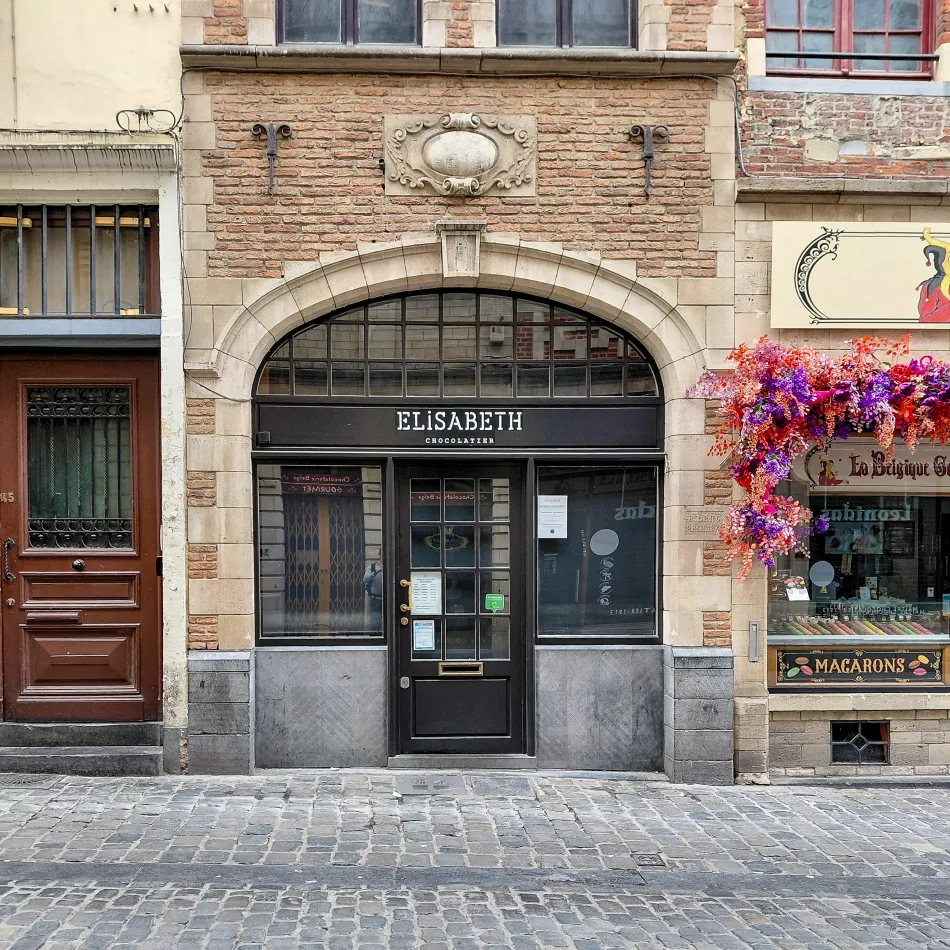 上面那幾個大品牌都非常知名、不用多介紹,我要分享的是位於大廣場北緣 Rue au Beurre 上的 Elisabeth Chocolatier(Google Map 位置圖),路過的時候看到抹茶巧克力超級精美,就買了幾個。有股淡淡的天然抹茶味,裡面的榛果醬也不會太甜,是很不錯的巧克力,當然…價格很不可愛!