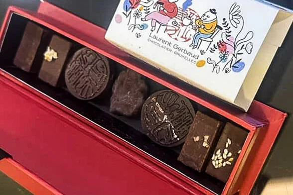 由尿尿小童的方向再走一點點有一家超不顯眼的店:Laurent Gerbaud(Google Map 位置圖|官網),很容易錯過!徒步導覽的導遊說…這家巧克力品質超高、贏過不少巧克力大獎(官網說他們獲選為2021年布魯塞爾最佳巧克力),價格也沒有特別貴、頂多跟 Neuhaus 差不多,蠻適合買來送人的,我沒吃過就是了!