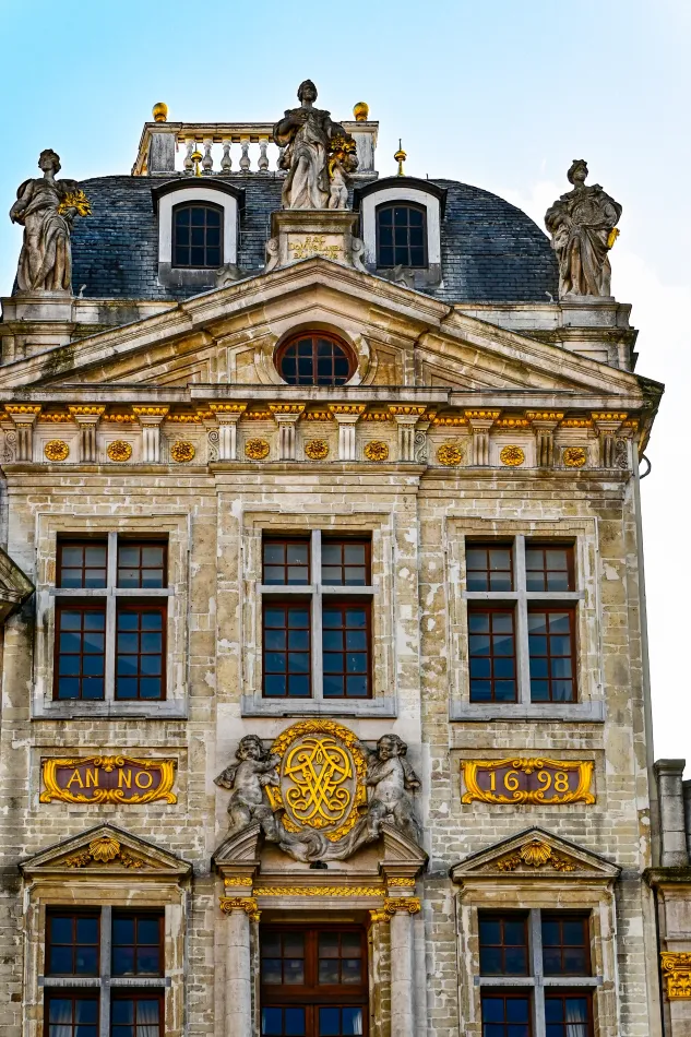 大廣場上最宏偉的建築首推布魯塞爾市政廳(Hôtel de Ville/Stadhuis,Google Map 位置圖),沒有開放遊客參觀。市政廳於1455年完成、非常古老,然後…它也是大廣場上最古老的建築,這是拜路易十四所賜。