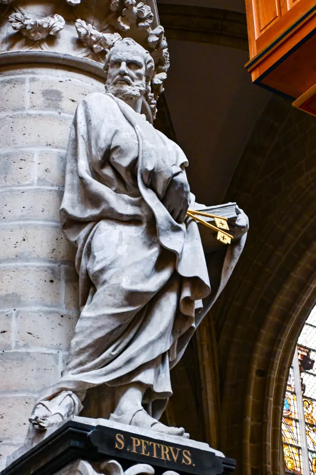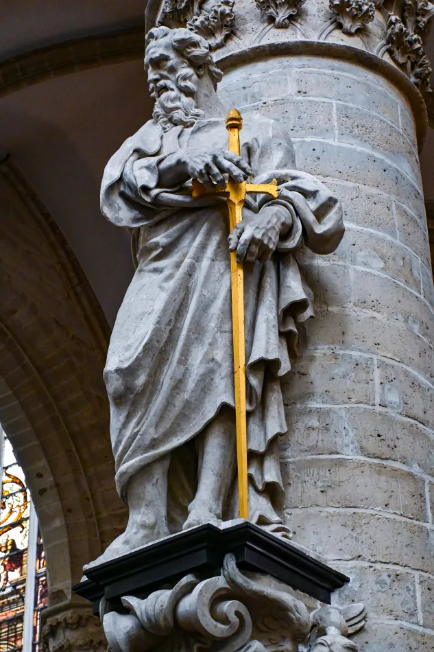 教堂內還有12使徒的雕像、很好認,例如拿鑰匙的聖彼得、持劍的聖保羅,但是…沒有出賣耶穌的猶大。
