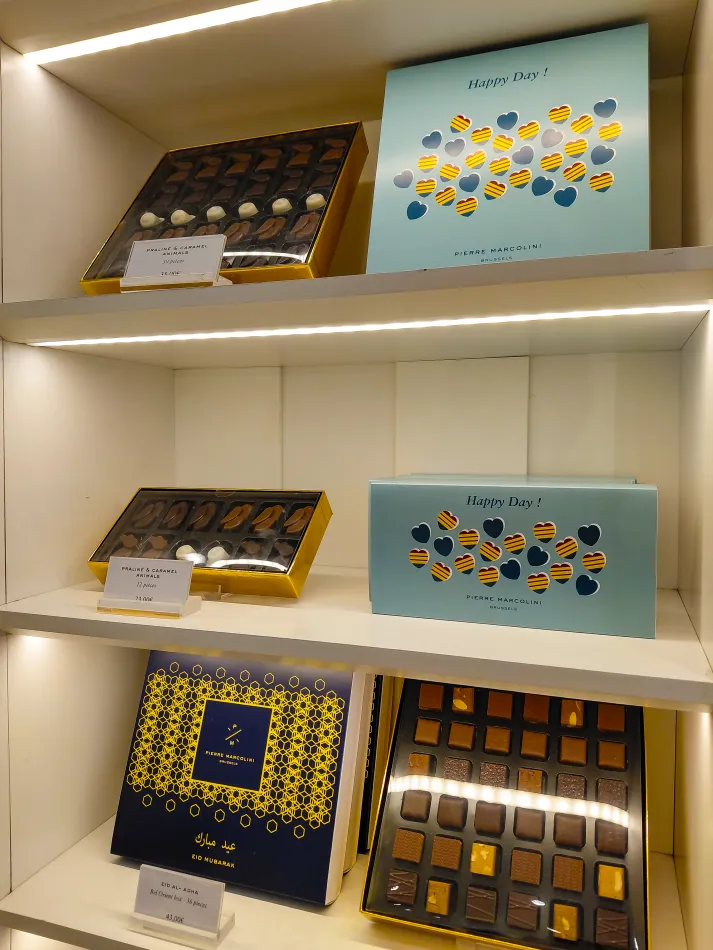 我參加的徒步導覽有附贈巧克力,送的是 Pierre Marcolini、一家把巧克力當成精品在經營的知名商家,店面非常有精品感。
