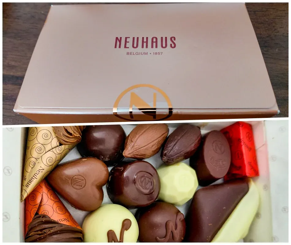 除了是比利時果仁糖巧克力的始祖,Neuhaus 的品質也極高、目前全部都在比利時製造,也獲得認證為比利時皇家供應商(Belgian Royal Warrant holders),Mary、Leonidas、Godiva、Pierre Marcolini、Galler 等等知名比利時巧克力也是,部分店面的櫥窗也會展示這個殊榮。