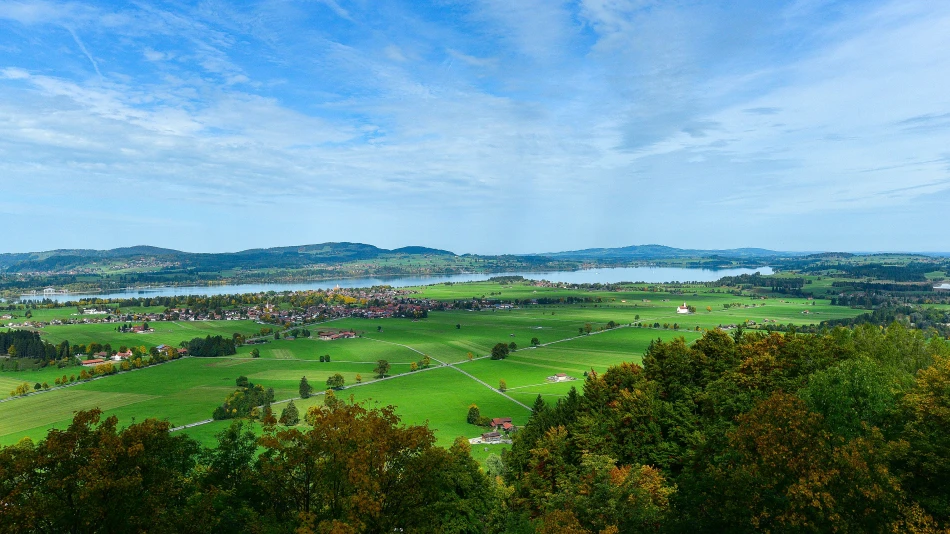 結束之後記得要去城堡咖啡館旁邊的陽台拍照,可一覽無遺德國阿爾卑斯山區的田園風光,也是拍攝 Alpsee 搭配高天鵝堡的最佳地點。