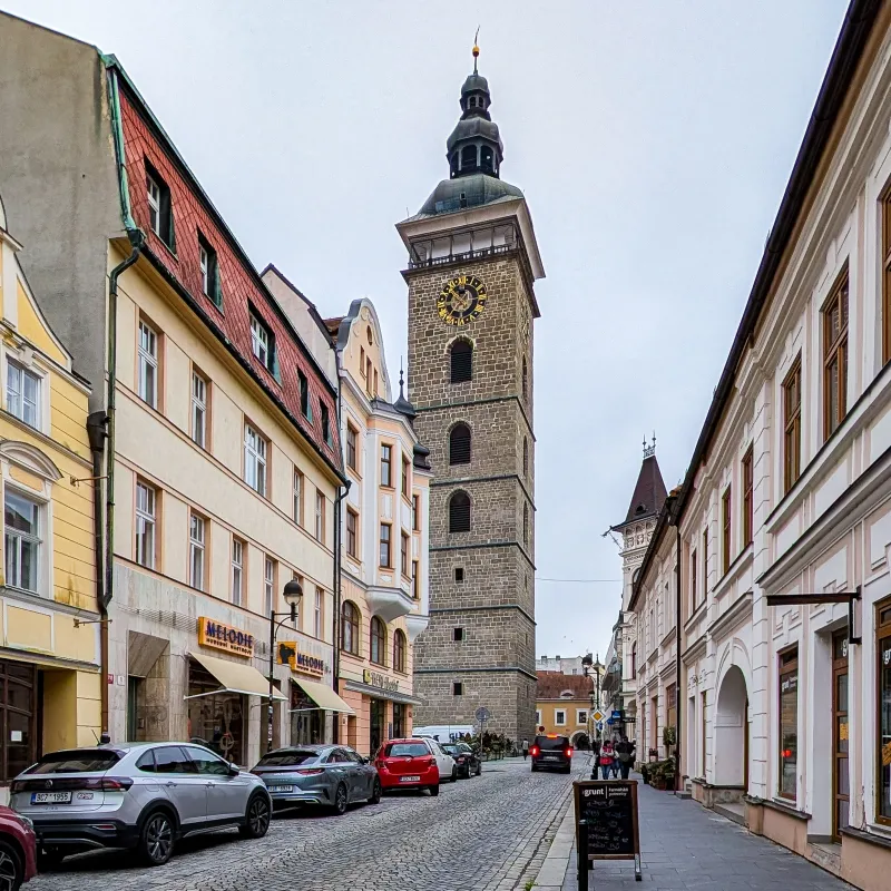 高約72公尺的黑塔(Černá věž,Google Map 位置圖)是傑斯凱布提約維次的象徵,動工時間是1547年、於1577年完工。「黑塔」這個名稱始於20世紀初,塔身直到19世紀末才變成現在的色調,以前還曾經被稱為白塔呢。